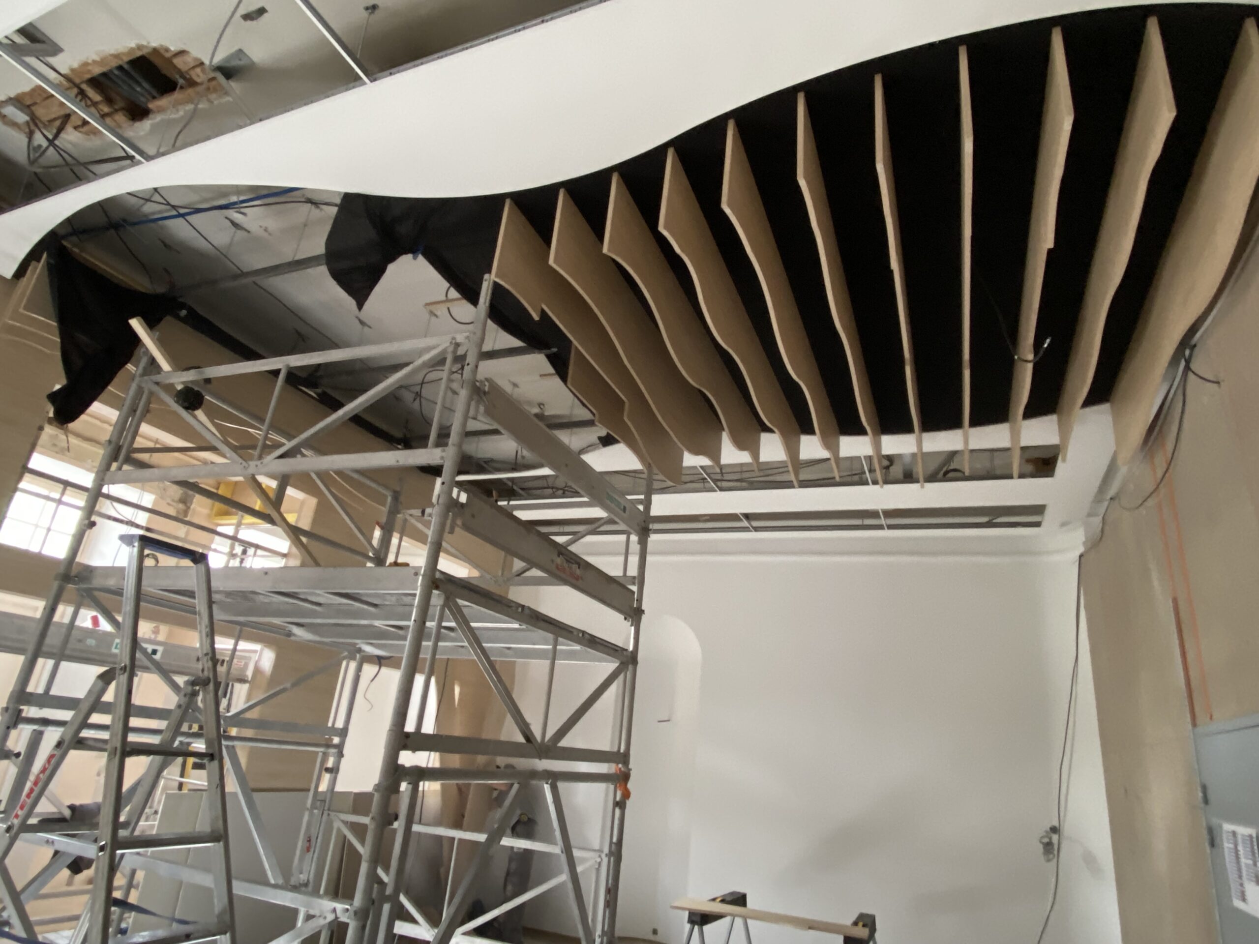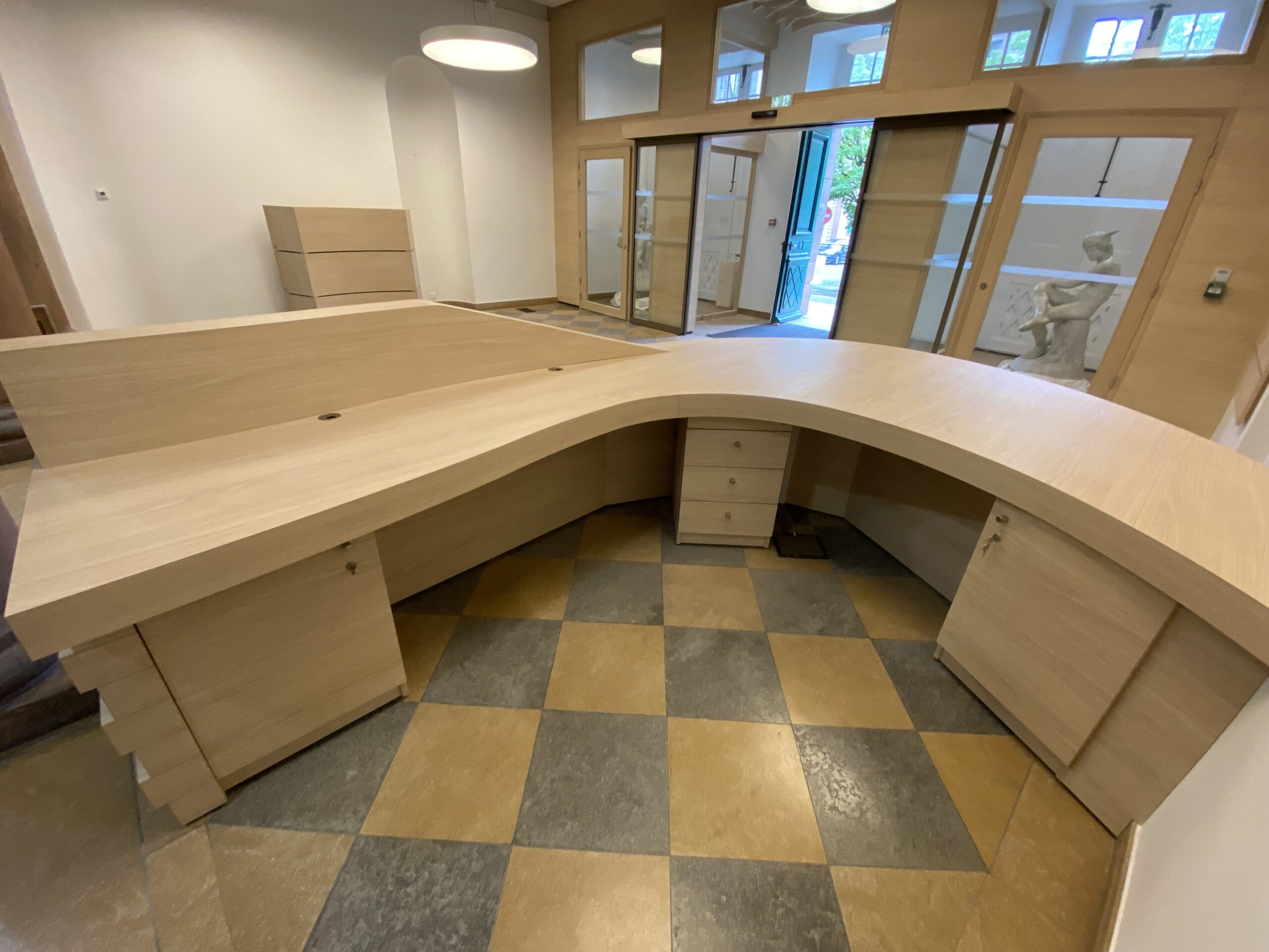 Réalisation d’un espace bureaux en open space, placards sous fenêtre, habillage muraux et placards administratifs
