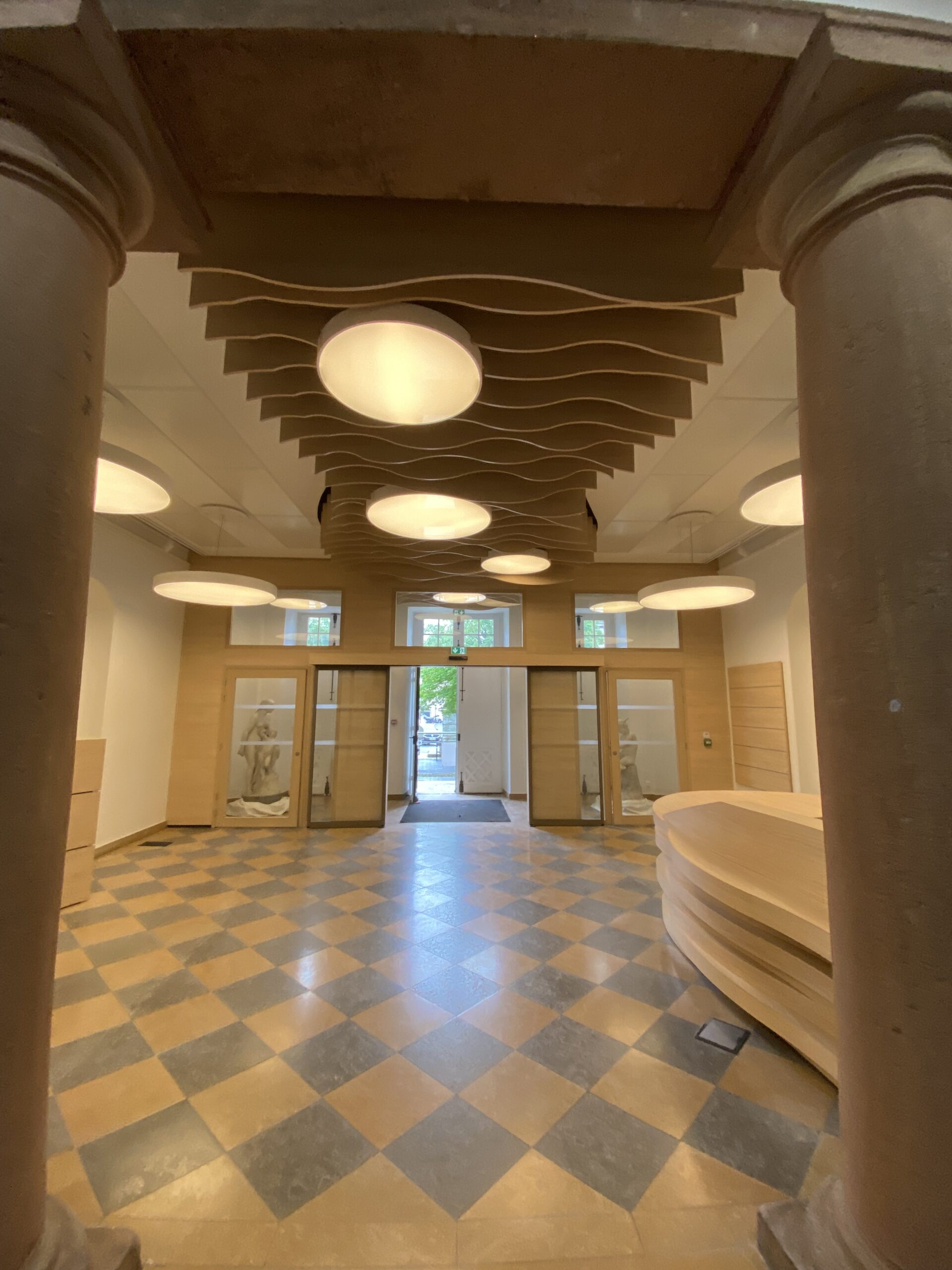 Portes acoustiques avec usinage dans la masse de silhouettes animales.