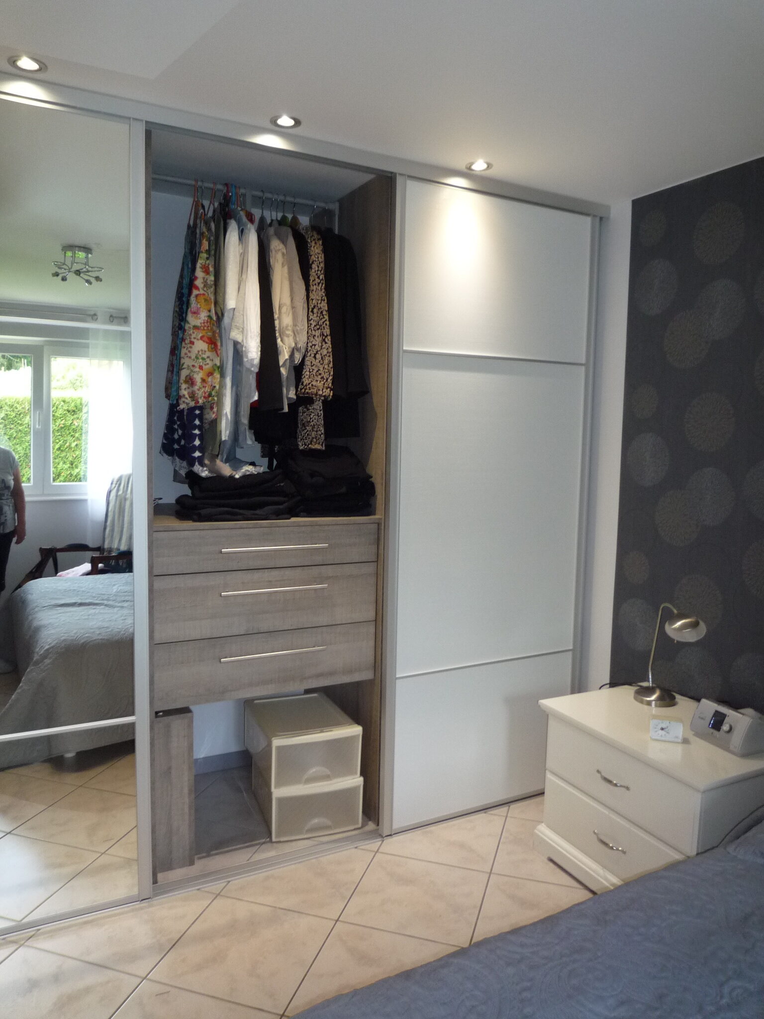 Placard à portes coulissantes avec tiroir à bijoux secret..